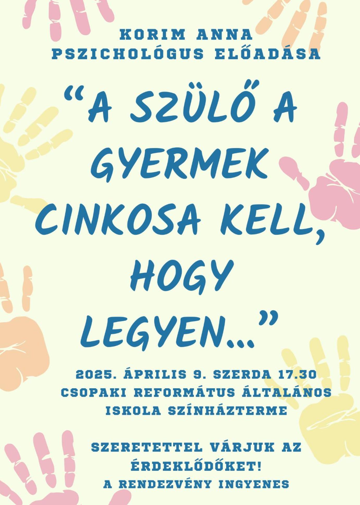 "A szülő a gyermek cinkosa kell, hogy legyen..." Szeretettel várunk minden érdeklődőt az iskolánkban tartandó ingyenes előadásra!Időpont: Április 9. 17:30