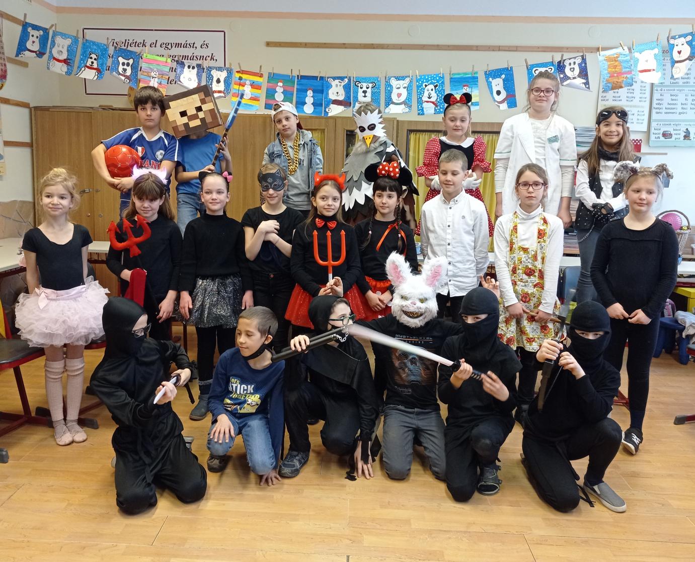 Farsang 2021 Hagyományoktól eltérően osztály szinten rendeztük meg idén iskolánkban a farsangot. Osztályonként eltérő program várta a tanulókat, jelmezverseny, tombola, vetélkedő és társasjáték színesítette a programot.