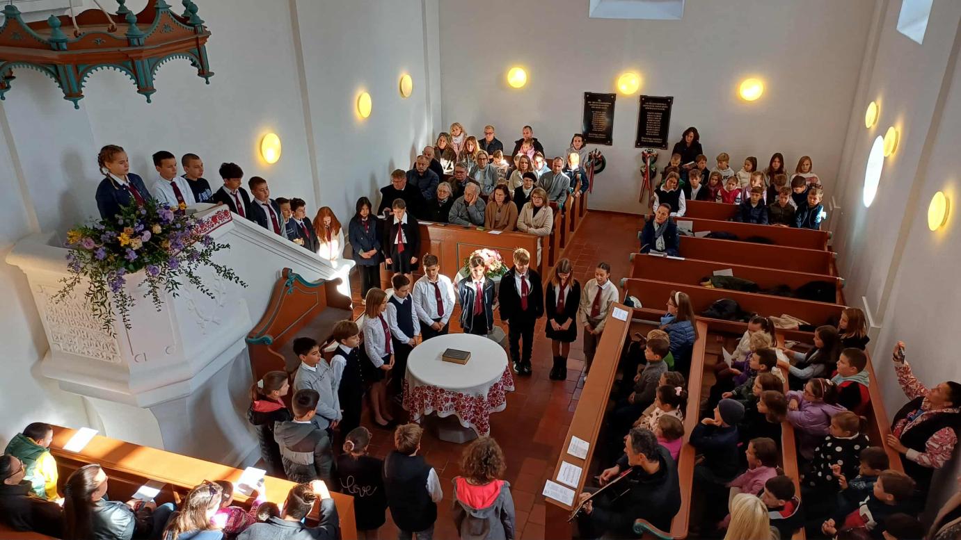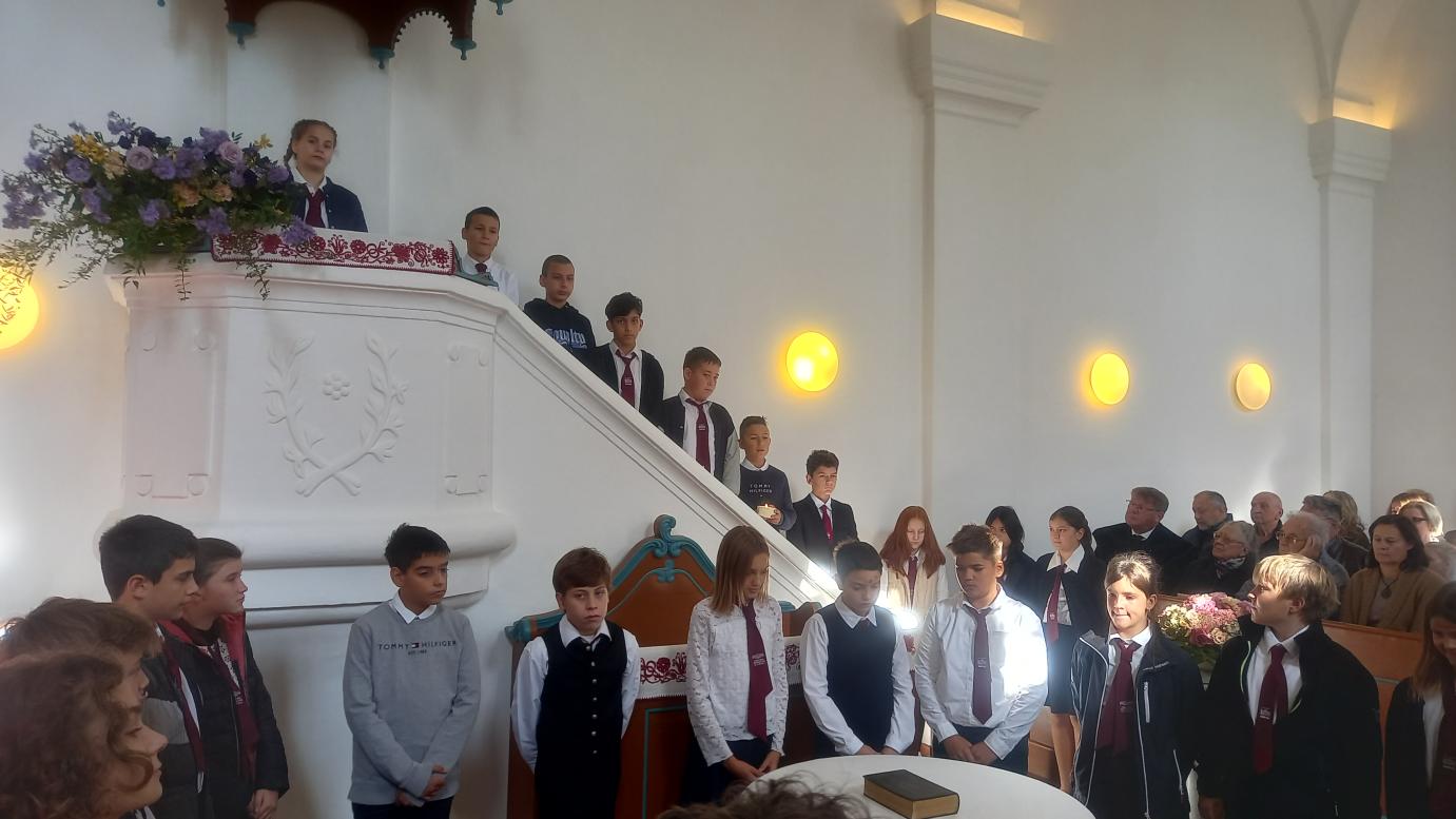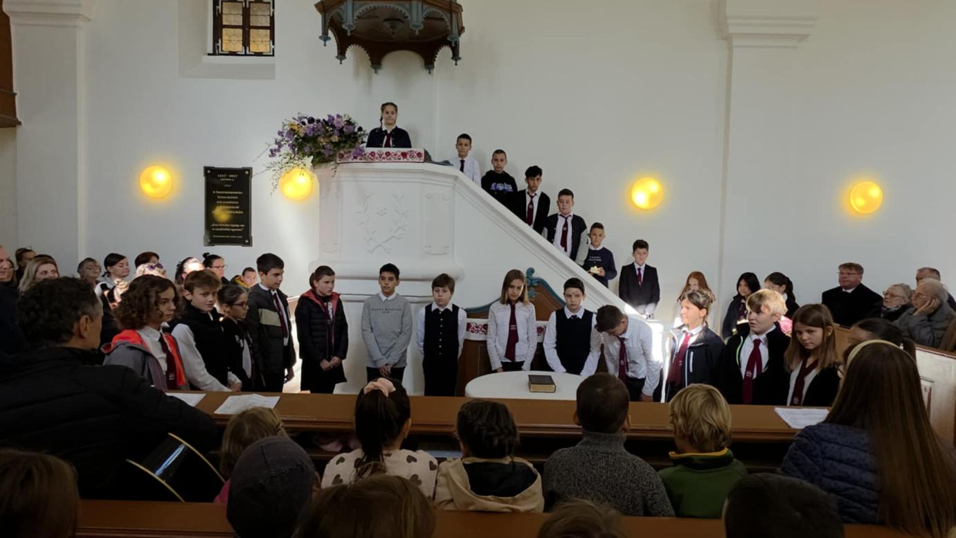 A hatodik osztály „Hősiesség” címmel szolgált műsorral az október 19-i családi istentiszteleten. Megemlékeztek a nemzet hőseiről, a mindennapok bátor embereiről, valamint a hit hőseiről is, akik példát mutatnak kitartásból és szeretetből. Műsoruk további üzenete, hogy hősnek lenni nemcsak a csatatéren lehet, hanem a mindennapok apró tetteiben is.