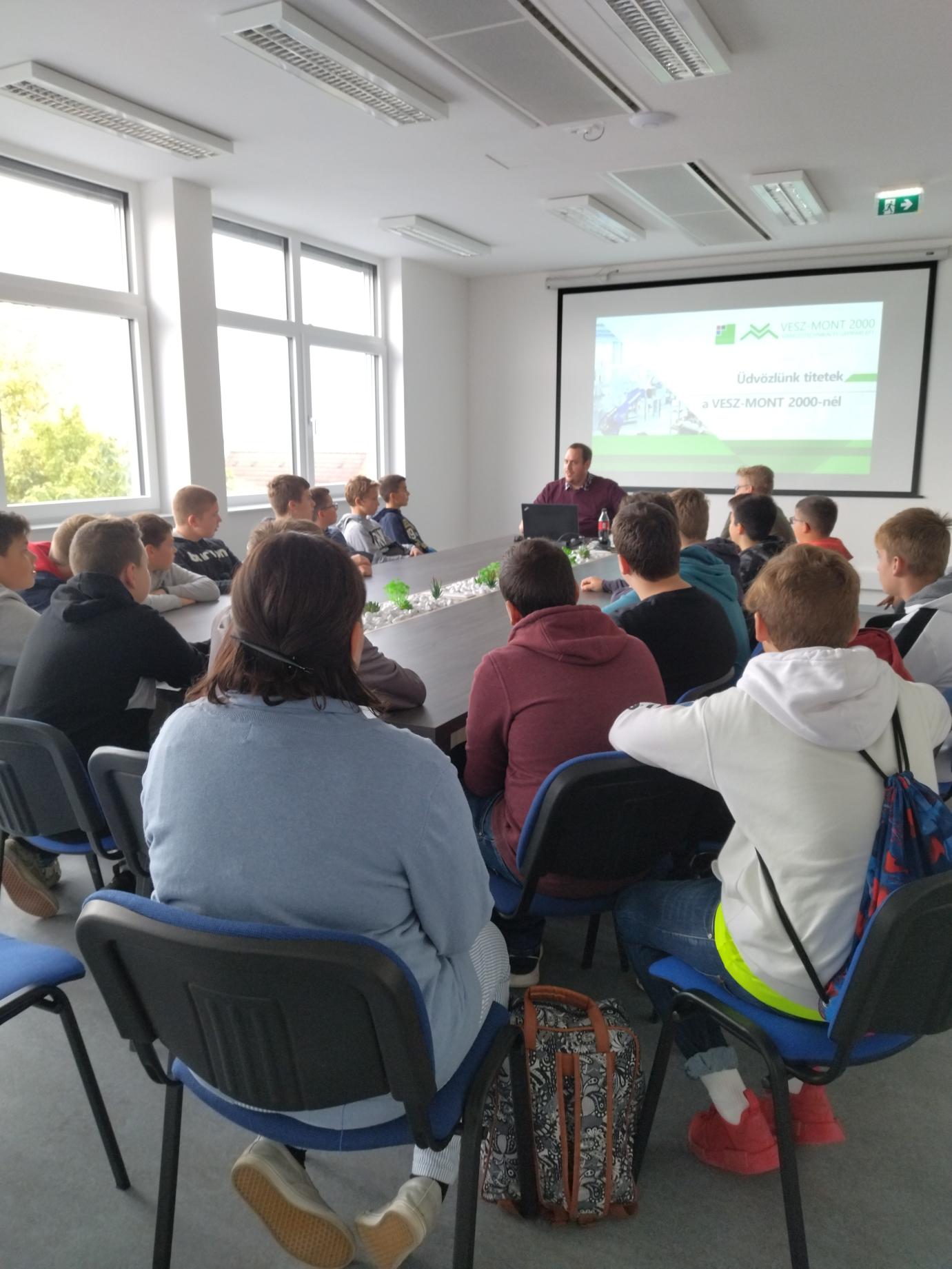 A Veszprém Megyei Kereskedelmi és Iparkamara szervezésében iskolánk 7. és 8. osztályos fiú tanulói részt vettek a nemesvámosi VESZ –MONT 2000 Kft-nél egy rendkívül érdekes pályaorientációs célú üzemlátogatáson, mely a gyerekek későbbi iskola- és szakmaválasztásához nyújtott nagyszerű segítséget.